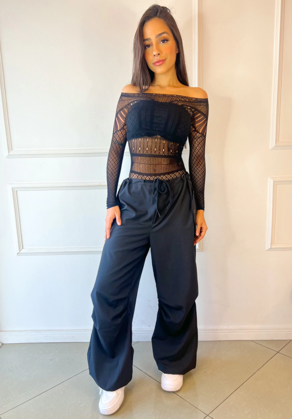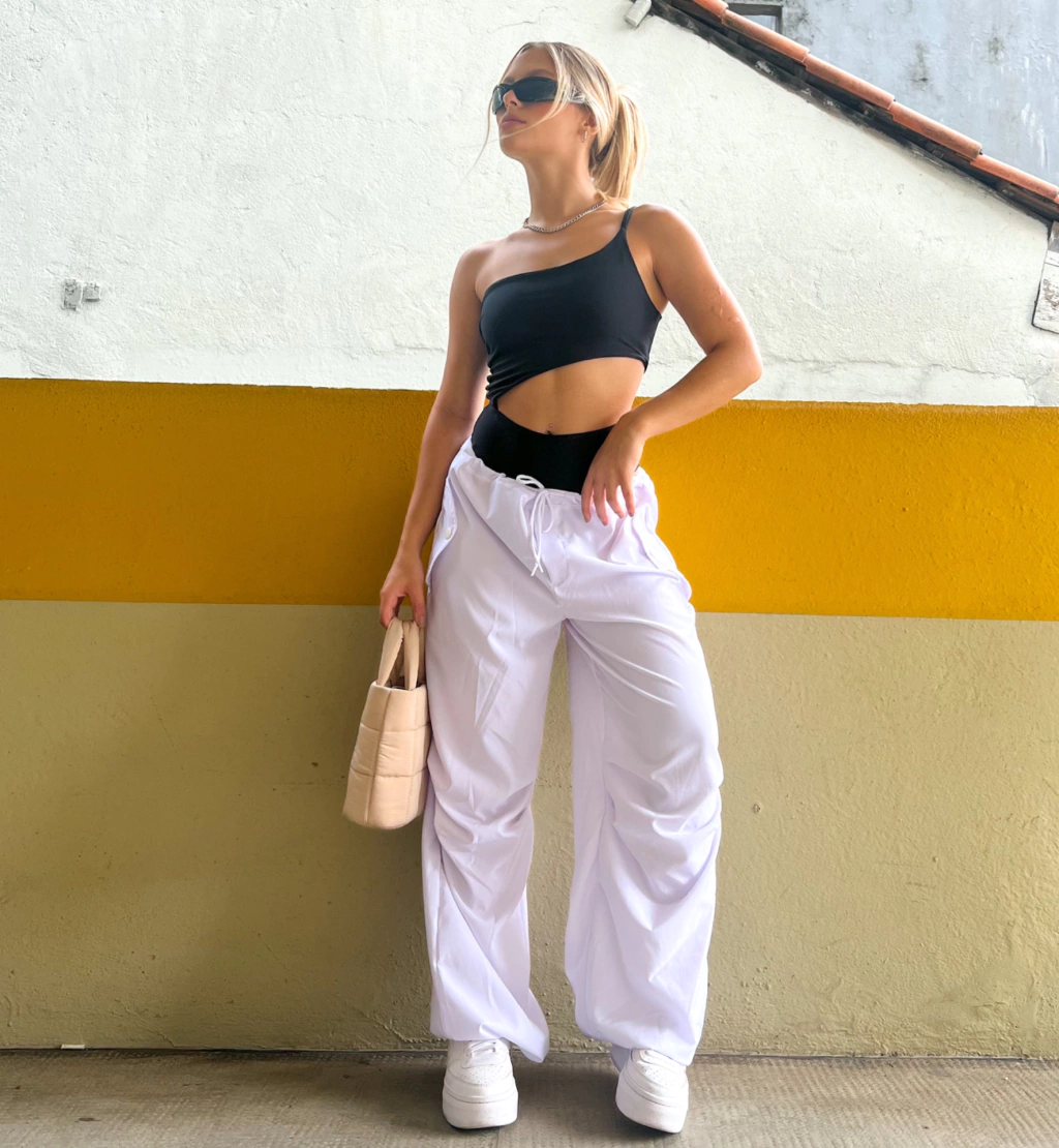 Na cintura possui cadarço que você consegue ajustar bem no seu corpo